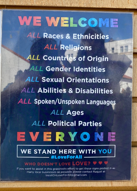 The picture above is of a sign outside a performing arts theater in Santa Barbara, California. Looks like everyone is welcome. Well, not really. It turns out that if you're not "vaccinated" you're not welcome. If you haven't arrived at the ticket booth with ID and proof of being injected with two doses of an emergency use experimental gene treatment for "covid 19" -- a treatment which has no efficacy and is associated with millions of serious injuries and deaths -- this #LoveForAll message doesn't actually apply to you. If you're not "vaccinated" the only way you can get into the theater now is if you have taken a test proving you don't have the plague. Don't want a PCR swab up your nose? Too late for an antigen test? Tough luck. This rainbow venue welcomes EVERYONE, except for carriers of the plague.